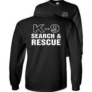 PERFECT GIFT IDEA: For your K-9 Search & Rescue K9 SAR Search Team! *Available in cotton t-shirts, long sleeves, custom name shirts & long sleeves, polyester performance t-shirts and long sleeves, short and long sleeve polo's,